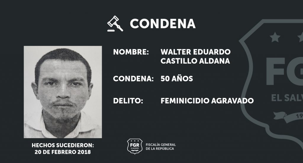 San Vicente. Gracias a la contundencia en las pruebas presentadas por las fiscales, Walter Eduardo Castillo Aldana fue sentenciado a 50 años de prisión por el delito de feminicidio agravado.