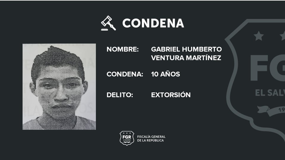 Sonsonate. Gabriel Humberto Ventura Martínez fue condenado a 10 años de cárcel luego que se comprobó que en enero de 2022, el imputado exigía mil dólares a un comerciante, en concepto de renta para la pandilla.