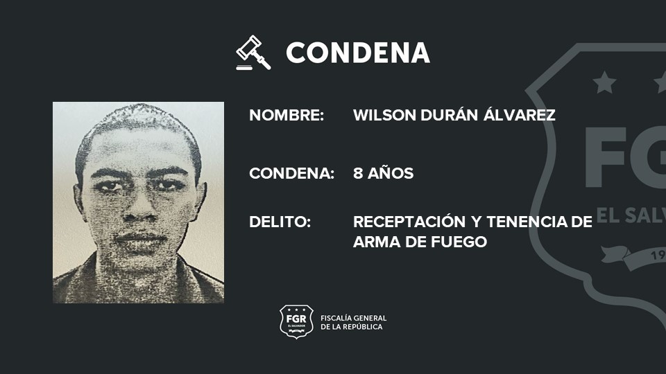 Durante el juicio en el Tribunal Segundo de Sentencia de Santa Tecla, la Fiscalía General de la República acreditó la existencia de los delitos y la participación directa de Wilson, por lo que fue condenado a 8 años de prisión por los delitos de Tenencia, Portación o Conducción Ilegal o Irresponsable de Arma de Fuego y Receptación.