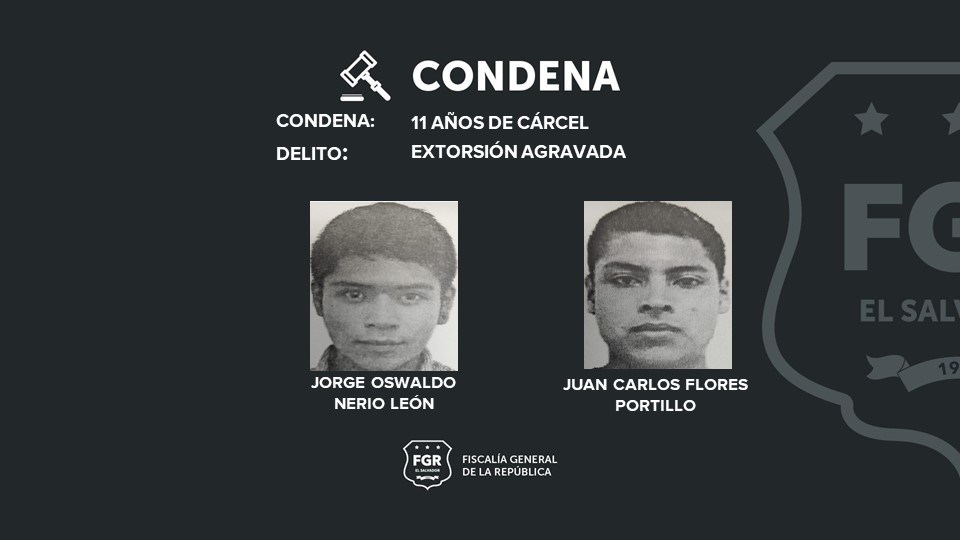 Asimismo, Jorge Nerio León, alias «Koki» y Juan Carlos Flores Portillo, alias «japi”, fueron sentenciados a 11 años de cárcel por extorsión agravada.