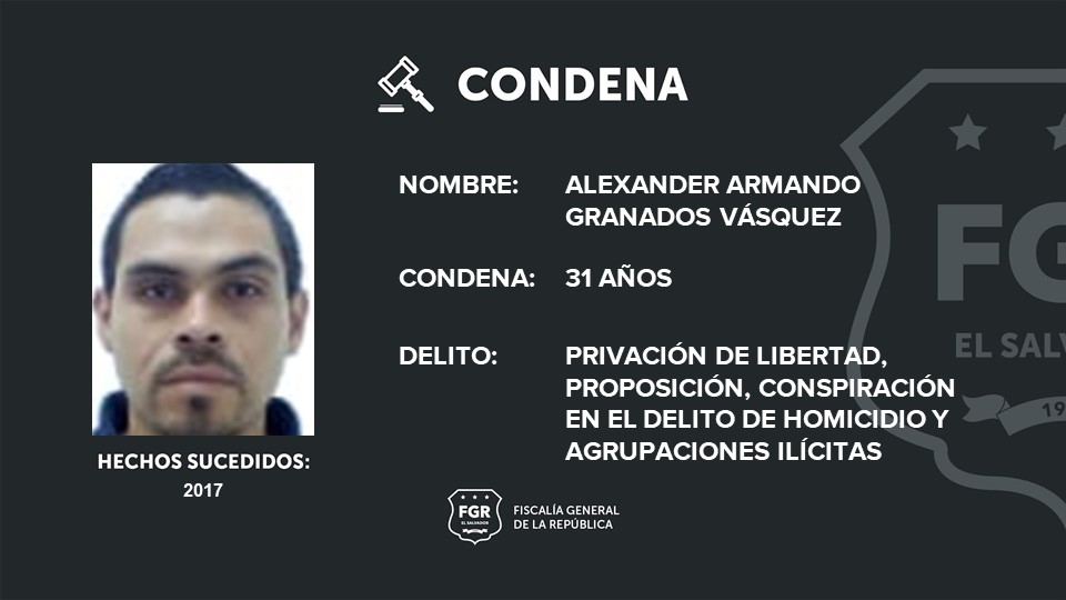 Al ranflero nacional del programa Libertad, Alexander Armando Granados Vásquez, alias “N11” se le condenó a 31 años de cárcel por ser responsable de una privación de libertad, cómplice en homicidios y por agrupaciones ilícitas; José Eliseo López Acevedo, alias “Diablo Kevin”, recibió 28 años por extorsión agravada, por cómplice de homicidios y agrupaciones ilícitas.