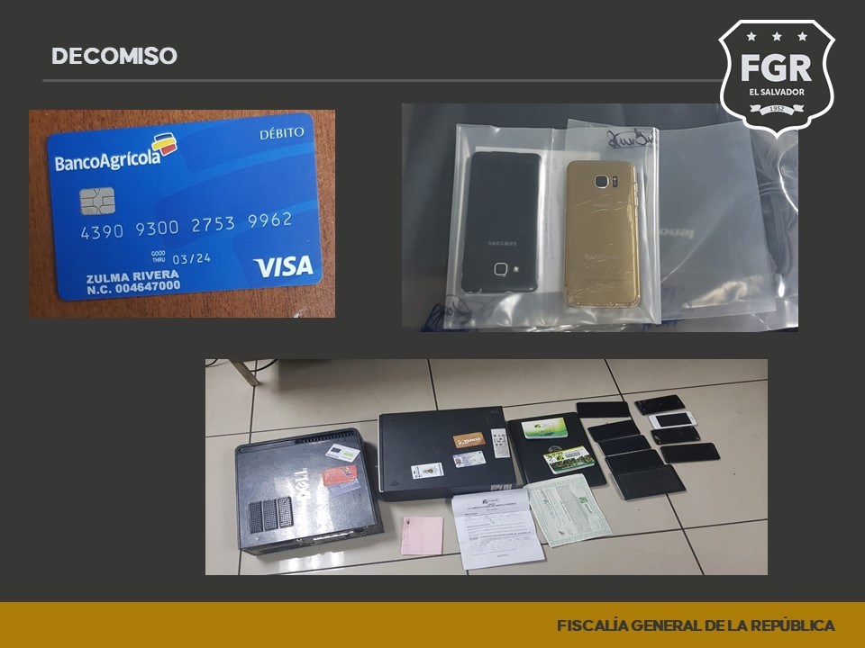 En los registros de las viviendas de los imputados fueron incautadas nueve libretas de ahorro, con movimiento de miles de dólares, una tarjeta de débito, tres computadoras laptop, tres comprobantes de retiro de dinero de Caja de Crédito de Quezaltepeque, un certificado de depósito a plazos, dos CPU, cuatro chips para teléfono y una memoria USB.