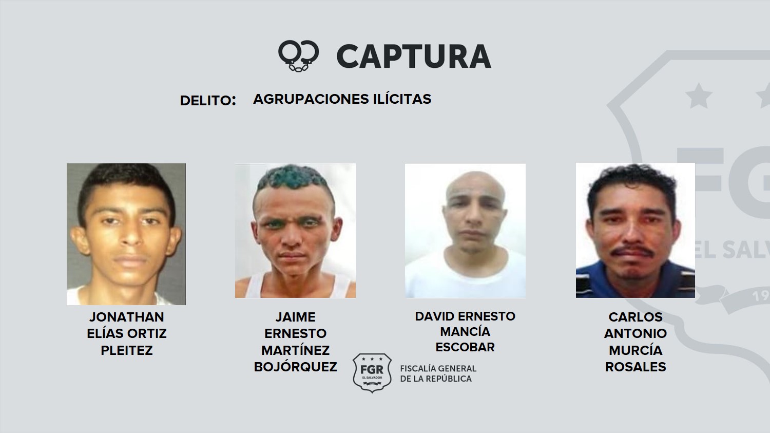 Durante el operativo se realizaron once capturas, entre las cuales destacan las de Yahaira Elizabeth Campos, Henrry Clisman Portillo y Noemi Guadalupe Rossel. Otros pandilleros fueron intimados ya que guardan prisión por otros delitos y fueron capturados gracias al Régimen de Excepción.
