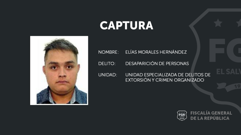 Quezaltepeque, La Libertad. La Unidad Especializada de Delitos de Crimen Organizado de la Fiscalía General de la República, ordenó la captura de José Elías Morales Hernández, por el delito de Desaparición de Personas.