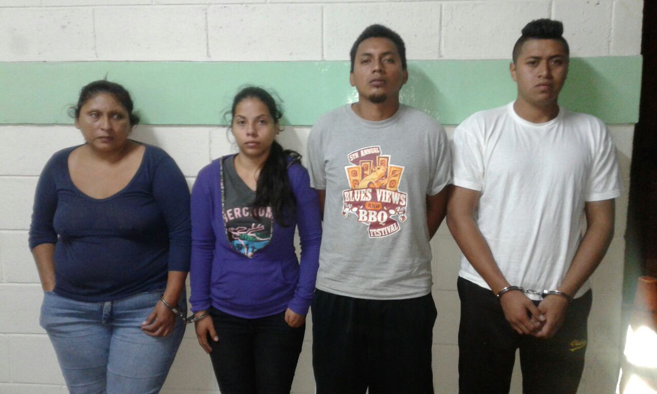 Los detenidos en la zona de Nuevo Cuscatlán fueron identificados como: María Bersabe Vásquez, de 42 años de edad, alias “La bersa”, Carlos Ernesto Blanco Vásquez Gómez, alias “Furon”, y Josué Arístides Velis Gómez, alias “Cotuza”, de 25 años de edad. Además se procedió a la detención en flagrancia de Andy Marlene Blanco Vásquez, de 23 años de edad, por el delito de tenencia, portación o conducción ilegal de arma de fuego. A esta última se le. Incautó un arma de fuego tipo pistola, calibre 380, y dos teléfonos celulares.