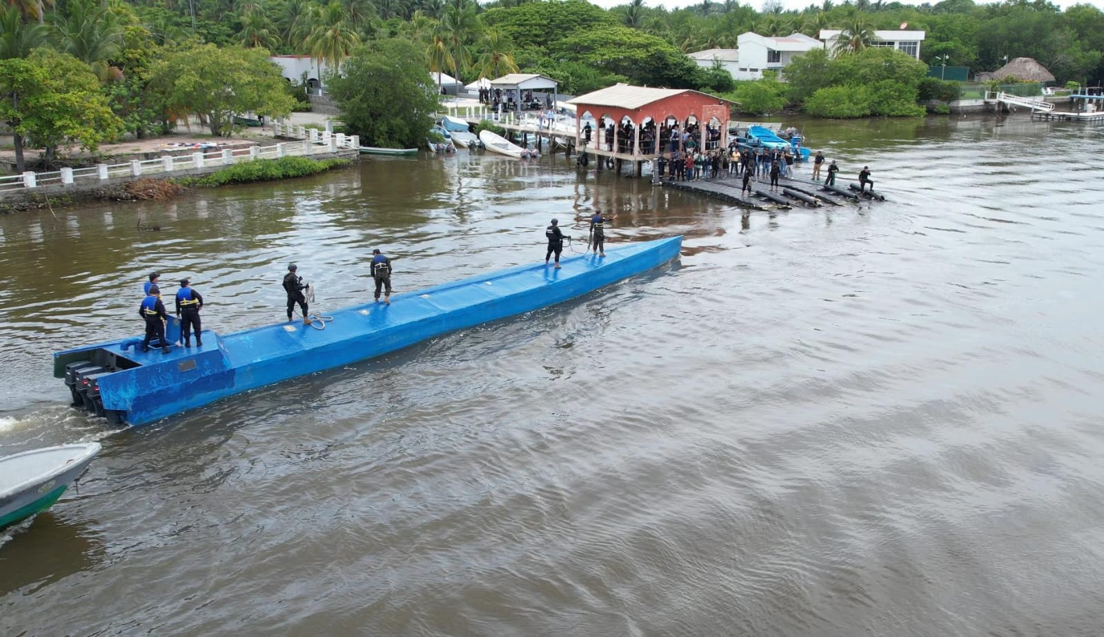 Y el 1 de julio pasado llegaron a tierra a la capitanía del puerto La Concordia de la Costa el Sol, en donde bajo la dirección funcional de la FGR y la División Antinarcóticos de la Policía Nacional Civil se verificó, recolectó y cuantificó la evidencia del alijo de droga.