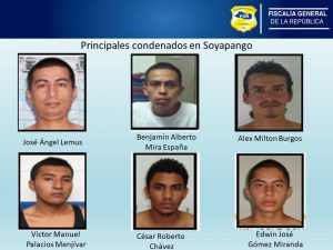 Soyapango. La Unidad de delitos relativos a la Vida e Integridad Física de la oficina Fiscal de Soyapango logró condenar a 27 miembros de una estructura Terrorista de la MS-13, por Homicidio, Agrupaciones Ilícitas y Proposición y Conspiración para cometer el delito de Homicidio.