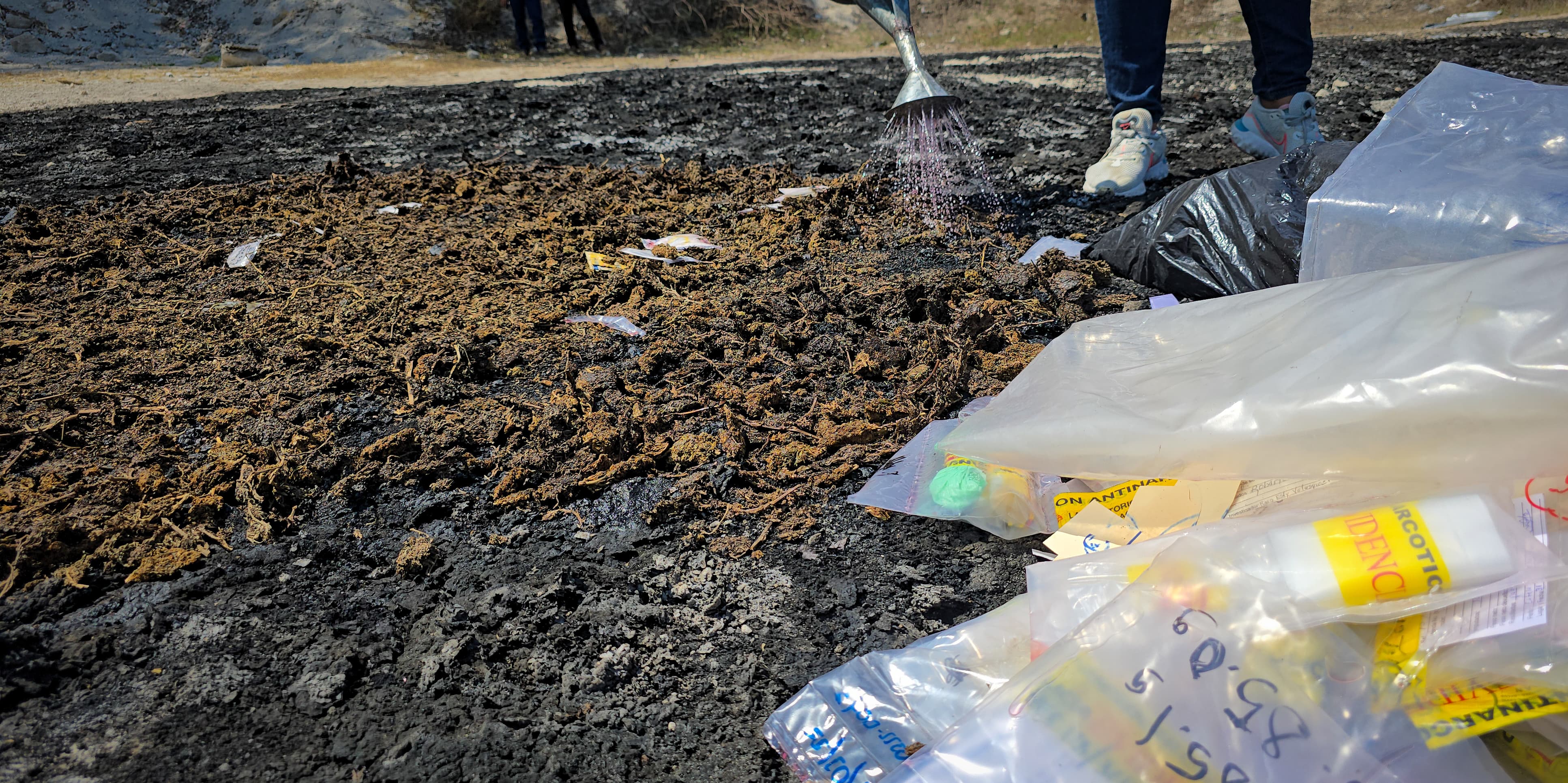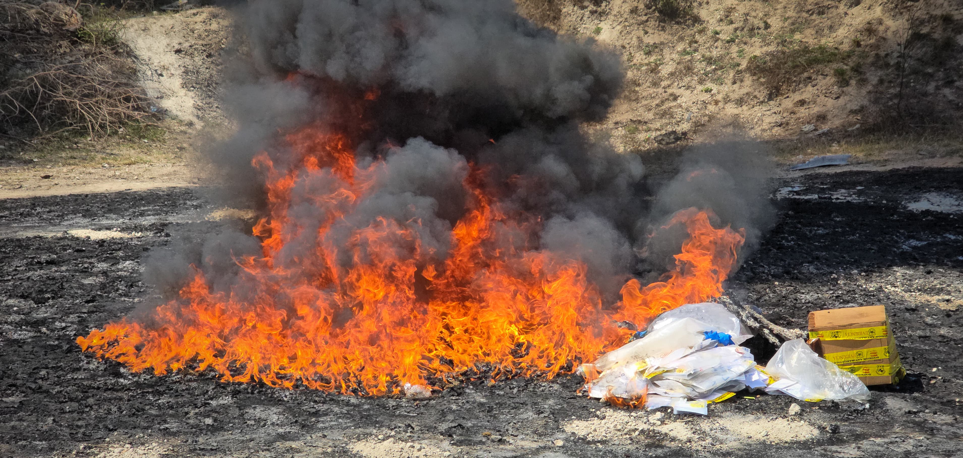La incineración se realizó con el apoyo de la División Antinarcóticos de la Policía Nacional Civil (PNC).