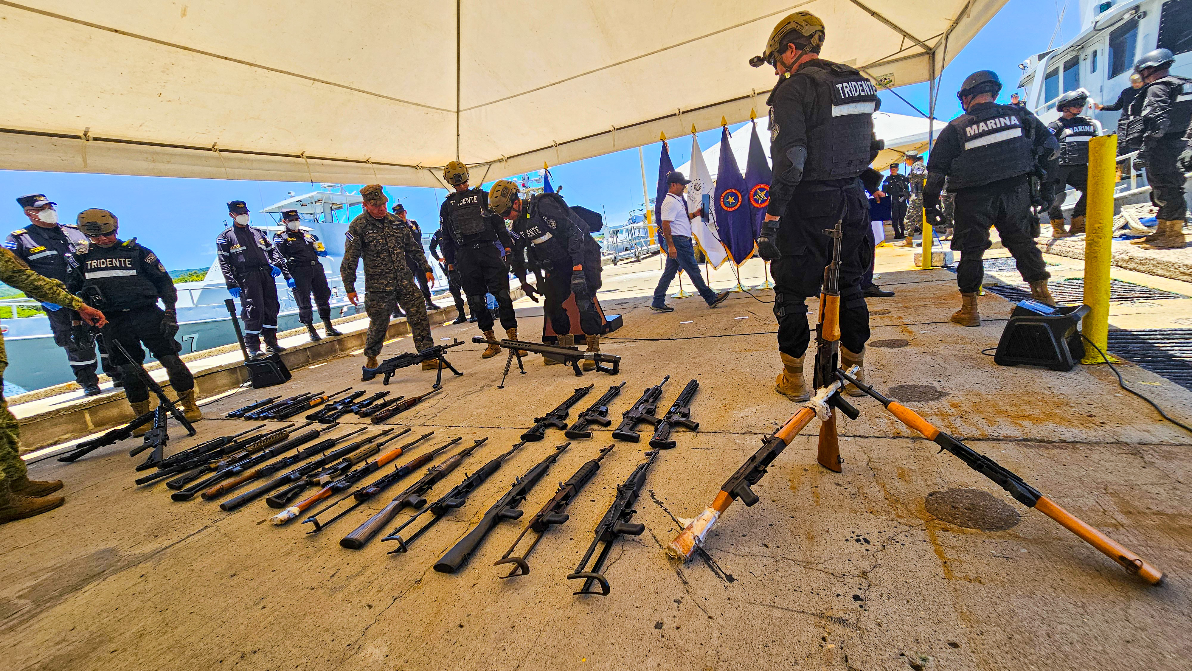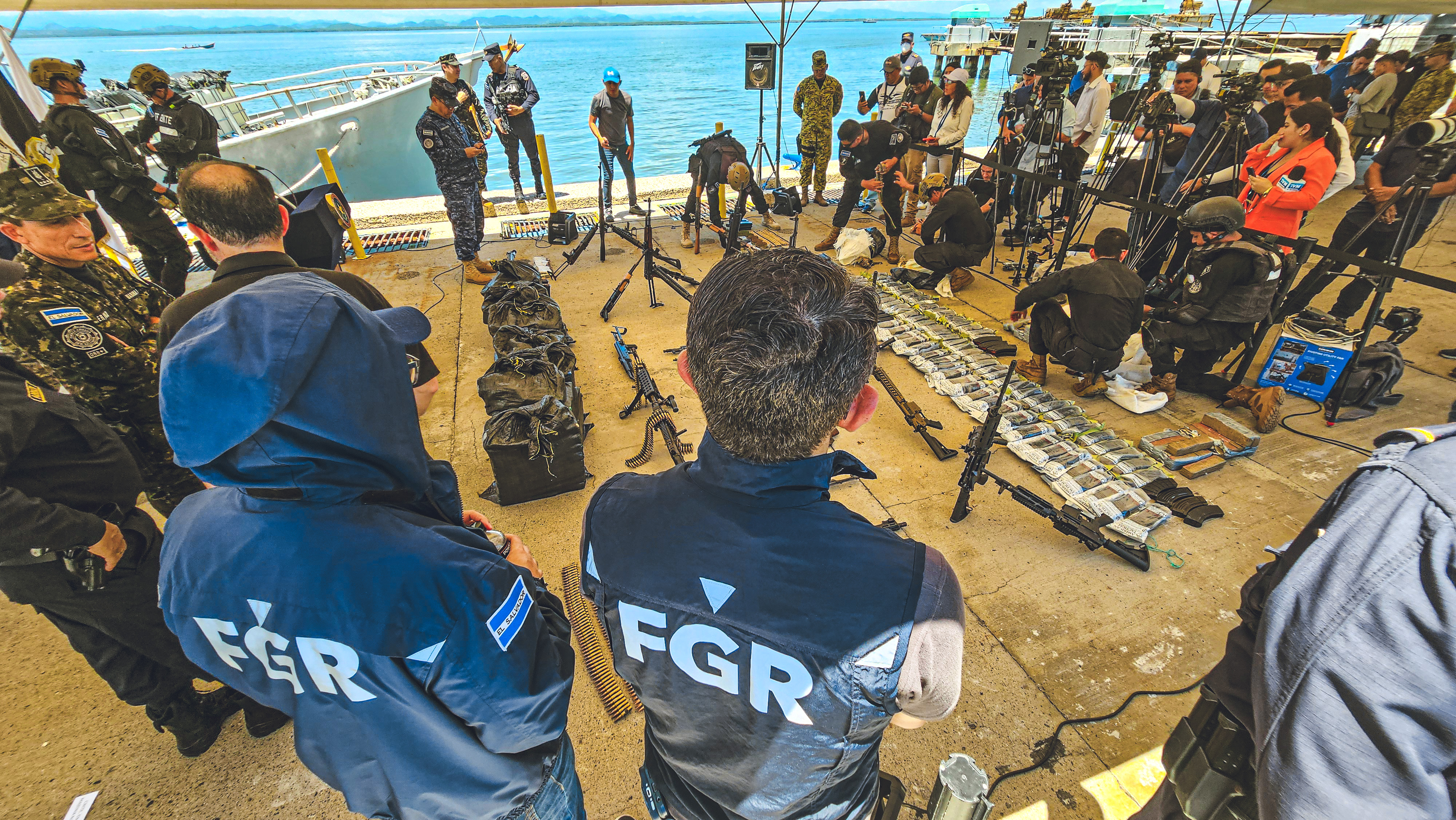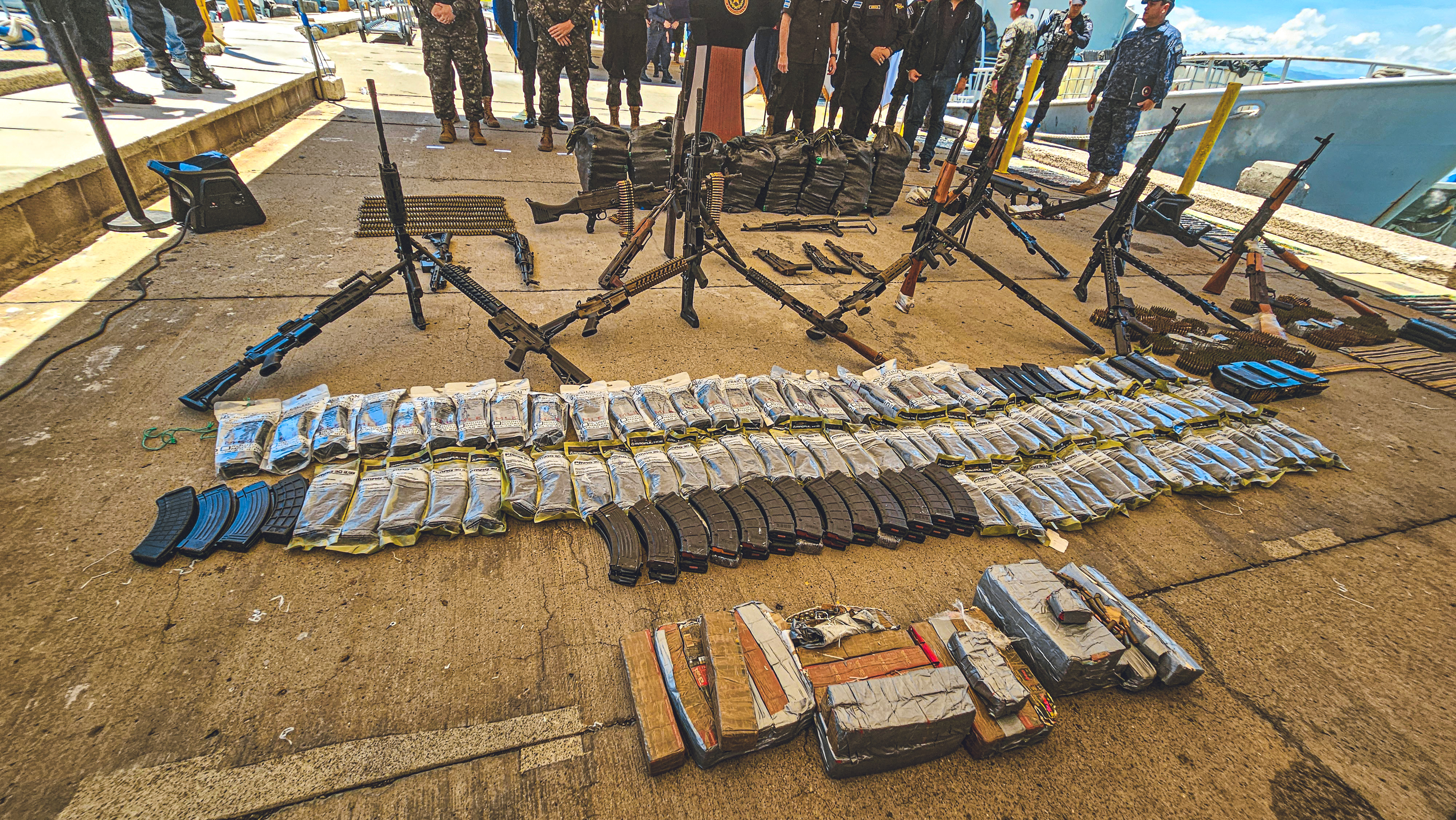 Fiscalía verifica millonario decomiso de droga y armamento incautado en aguas territoriales