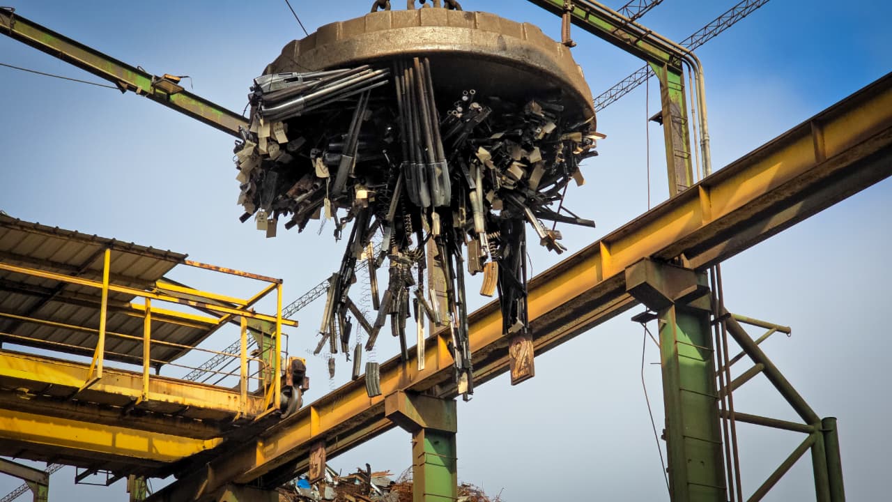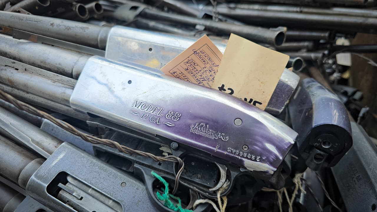 Quezaltepeque, La Libertad Norte. Este día, la Fiscalía verificó la destrucción de 1,413 armas de fuego que fueron decomisadas en diversos hechos delictivos cometidos en el país.