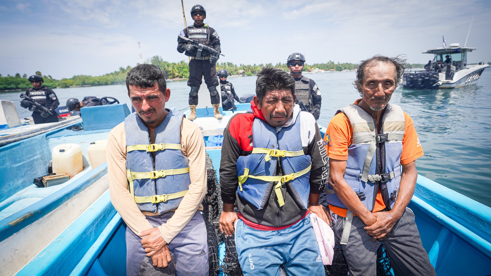 Bajo la dirección funcional de la FGR y hasta este momento se clasifica la evidencia y se han contabilizado 19 bultos que se transportaban en la embarcación tripulada por los ecuatorianos