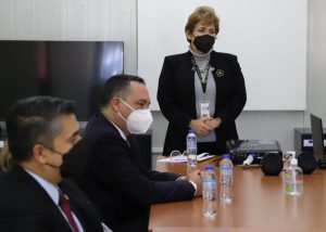 Acompañan al Fiscal General de El Salvador, la Licda. Yesenia Guidos, Directora del Centro de Intervención de las Telecomunicaciones y el Lic. Jaime Ernesto Cruz, Director de Asuntos Legales Internacionales.