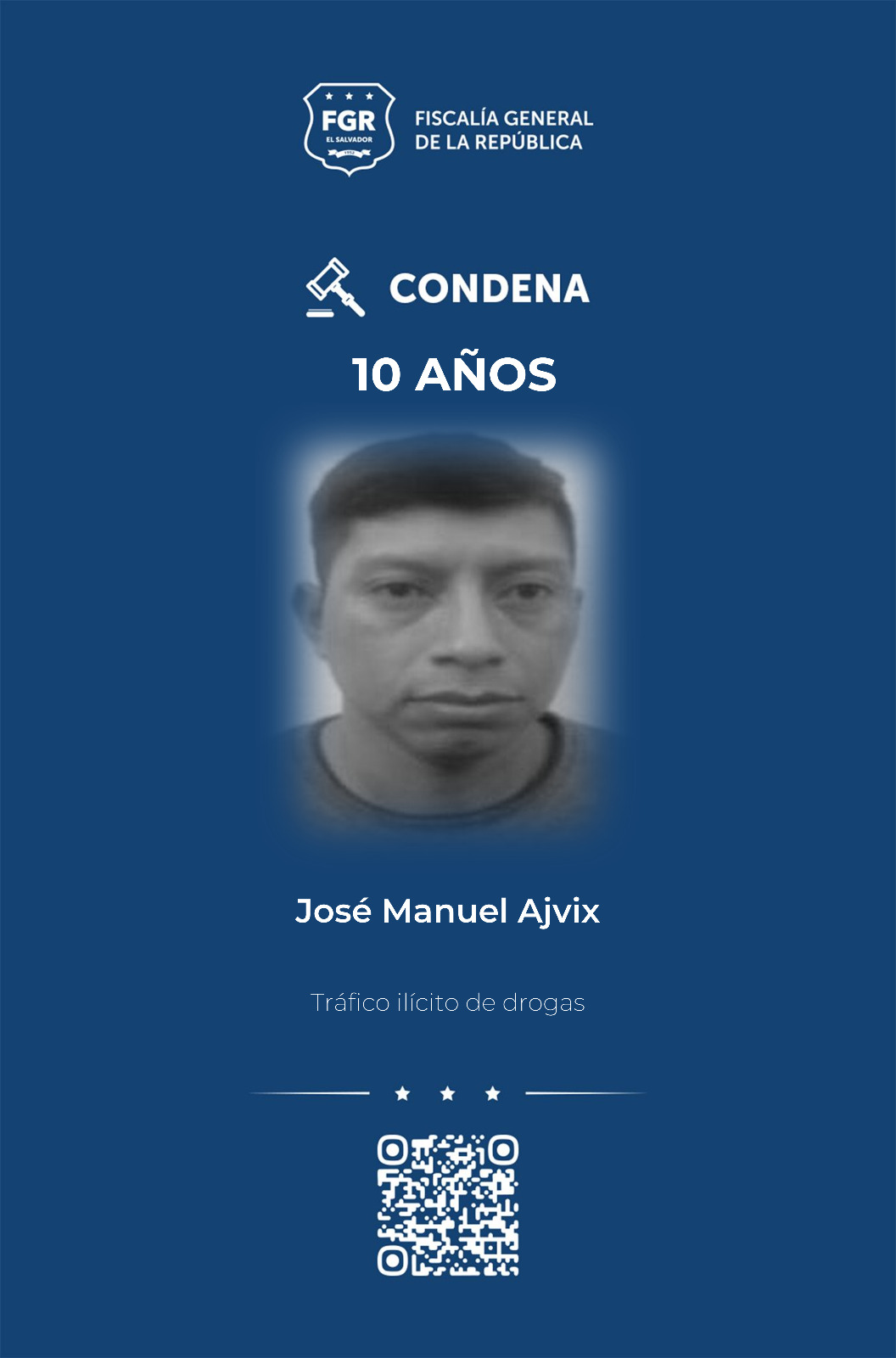 San Salvador. El guatemalteco José Manuel Ajvix fue condenado a 10 años de prisión por tráfico de drogas, gracias a la prueba pericial, testimonial y documental que presentó la Fiscalía General de la República (FGR) ante los tribunales.