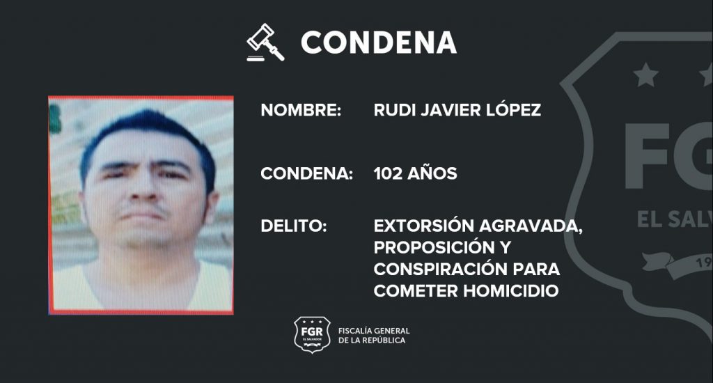 Las penas más significativas fueron impuestas a Rudi Javier López, líder local de la MS, quien fue sentenciado a 102 años de prisión por 4 casos de extorsión, una planeación de homicidio y por agrupaciones ilícitas.