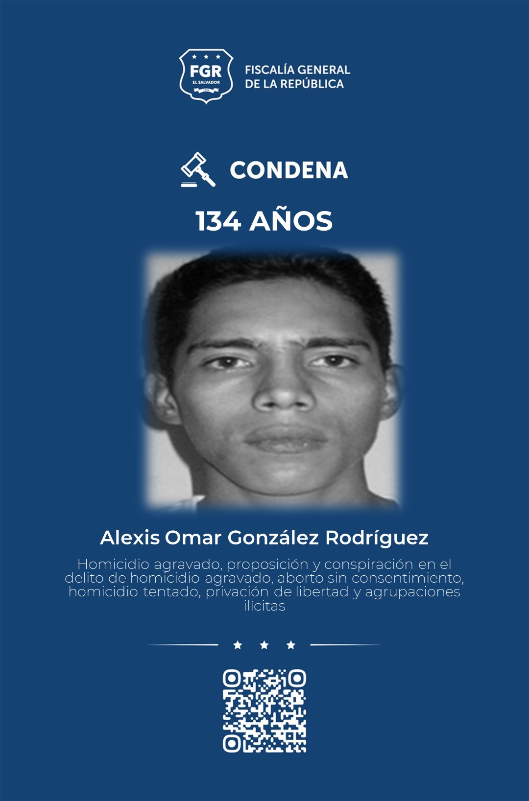 También se hizo justicia por el delito de proposición y conspiración del delito de homicidio agravado contra agentes de la Policía Nacional Civil, y el aborto de un recién nacido, además del intento de homicidio de un hombre.
