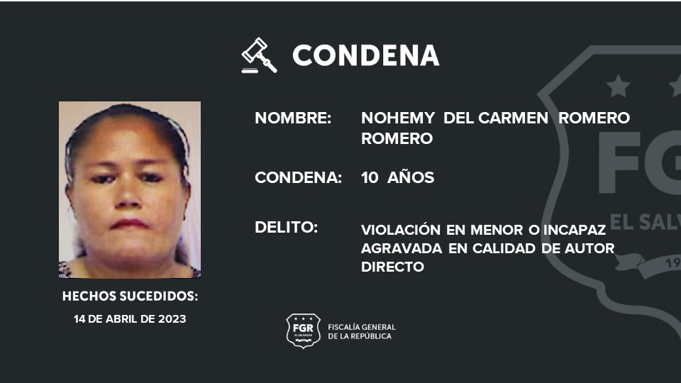 Por el delito de violación en menor o incapaz agravada en calidad de autor directo, Luis Alberto Umaña Zelaya fue condenado a 14 años de cárcel y Noemy del Carmen Romero Romero fue sentenciada a 10 años por ese mismo delito.
