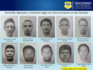 San Salvador. La unidad de delitos relativos a la vida e integridad física de la oficina fiscal de San Salvador logró condenar a 10 miembros de estructura delincuencial (pandilla 18) por los delitos de Homicidio Agravado y Limitación Ilegal a la Libre Circulación.