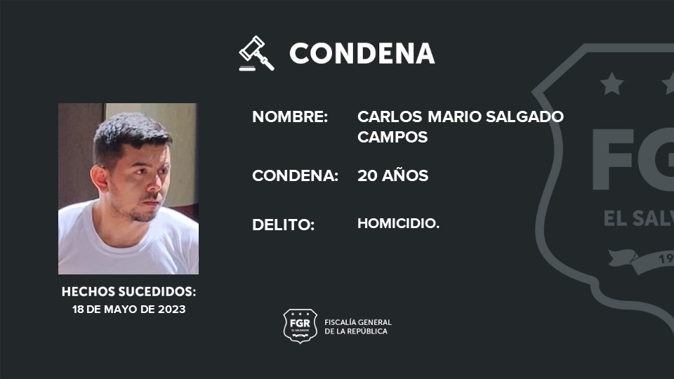 Usulután. A 20 años de cárcel fue sentenciado Carlos Mario Salgado Campos, por asesinar a un universitario en Concepción Batres, Usulután. La Fiscalía General de la República (FGR) logró comprobar que el procesado fue el autor material e intelectual del crimen.