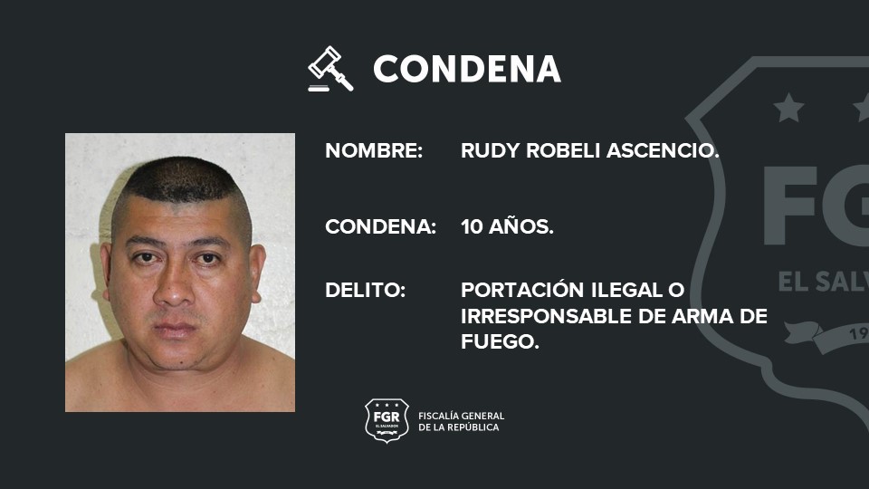 La Fiscalía General de la República (FGR) logró una condena de 10 años de cárcel para Rudy Robeli Ascencio por Tenencia, Portación o Conducción Ilegal o Irresponsable de Arma de Fuego.