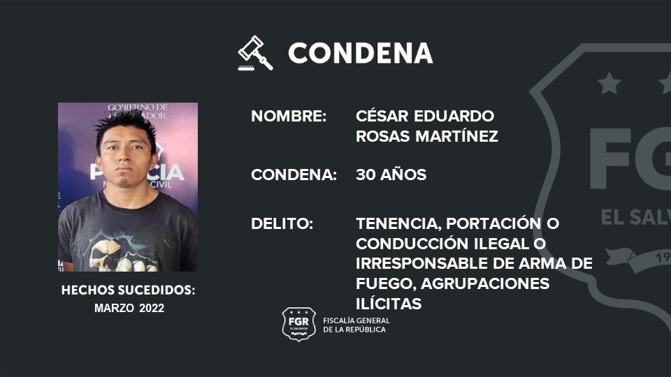 Ahuachapán. La Fiscalía General de la República se mostró satisfecha por el resultado condenatorio de 30 años de prisión que obtuvo en contra de César Eduardo Rosas Martínez, miembro de la Mara Salvatrucha.