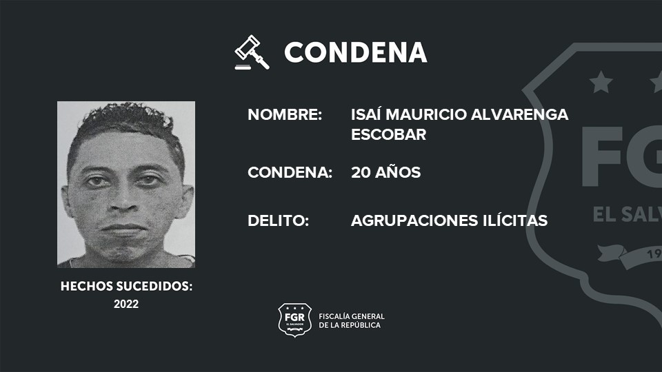 Chalatenango. Isaí Mauricio Alvarenga Escobar, alias el chele, deberá cumplir 20 años en una prisión por el delito de agrupaciones ilícitas. El pandillero tenía el nivel de homeboy dentro de una estructura criminal y fue detenido en el marco del Régimen de Excepción.