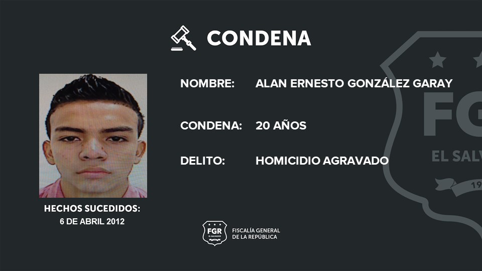Santa Tecla, La Libertad Sur. A 20 años de cárcel fue condenado Alan Ernesto González Garay por el homicidio agravado cometido el 06 de abril de 2012, en Comasagua, La Libertad Sur.