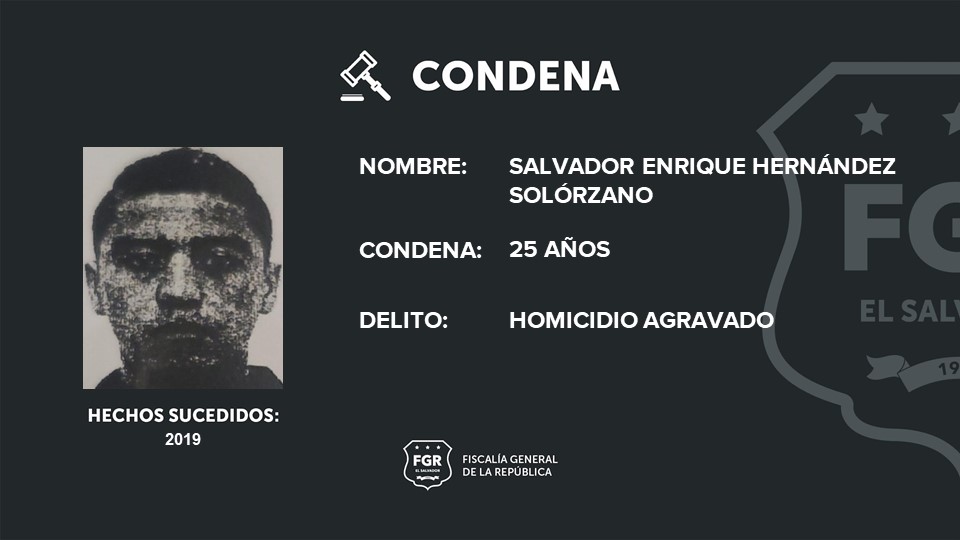 Santa Tecla, La Libertad. Salvador Enrique Hernández Solórzano, alias “Cuca”, quien es miembro de la MS, fue condenado a 25 años de prisión por el homicidio de un joven. El crimen fue cometido el siete de mayo del año 2019 en Lourdes Colón, departamento de La Libertad.