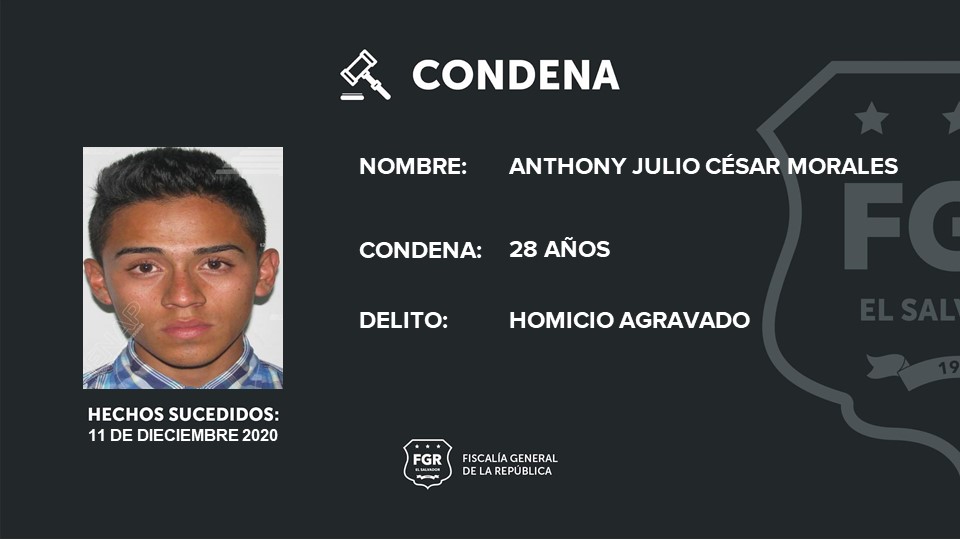 Santa Tecla, la Libertad. Gracias a las pruebas presentadas en juicio, la Fiscalía General de la República logró 28 años de prisión para Anthony Julio César Morales por el homicidio de Brayan Antonio Chicas Quintanilla, a quién asesinó con arma blanca y utilizando una soga.