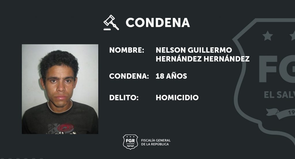San Vicente. Gracias a las pruebas aportadas por los fiscales se logró condenar a Nelson Guillermo Hernández Hernández a 18 años de prisión por el delito de homicidio simple.