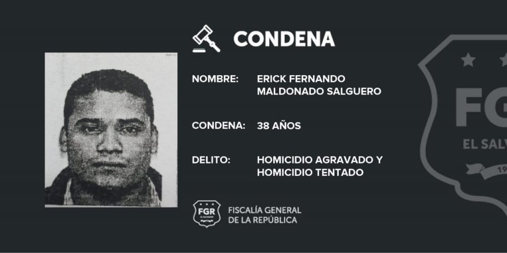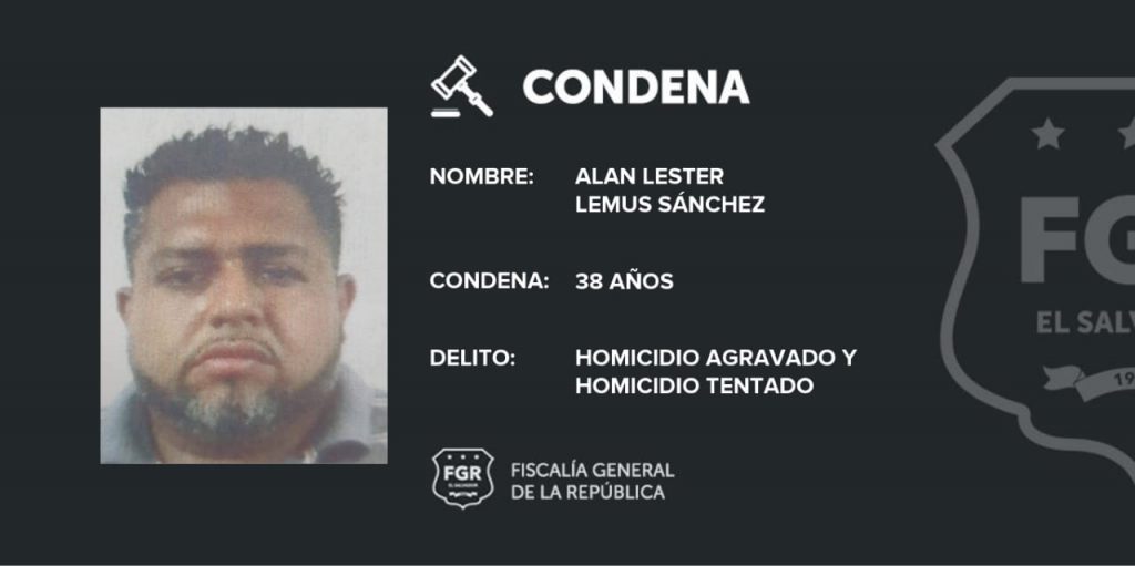 Con abundantes pruebas, la Oficina Fiscal de Santa Ana logró demostrar que Erick Fernando Maldonado Salguero y Alan Lester Lemus Sánchez, fueron los responsables de asesinar a Alex Gilberto Sandoval Axume, quien se encontraba en un taller y venta de repuestos ubicado en la calle Aldea San Antonio, del municipio y departamento de Santa Ana. A los imputados se les impuso una condena de 38 años de prisión.