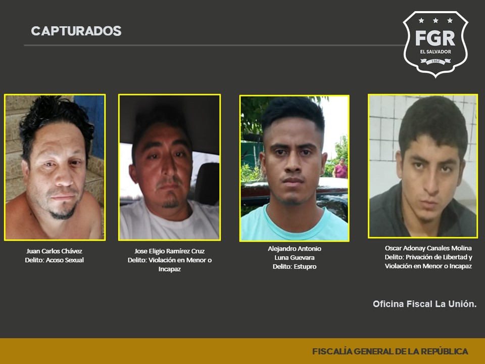 Mientras que en Morazán se reportaron cinco imputados más que darán cuenta por Agresión Sexual en Menor o Incapaz, Violación Agravada y Violación en Menor e Incapaz.