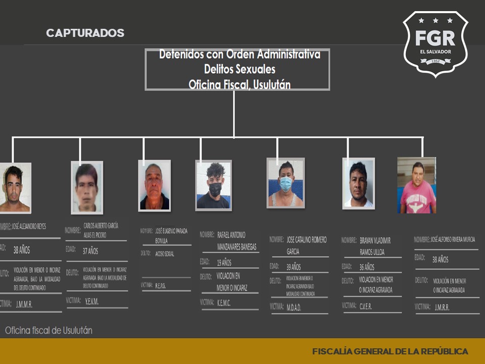 En Usulután se capturaron a 7 personas relacionados con Violación en menor o incapaz y acoso sexual.
