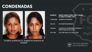 Se trata de María Juana y María Isabel, ambas de apellidos Serpas Lovo, quienes enfrentaron la Vista Pública en el Juzgado de Sentencia de Usulután bajo el delito de Extorsión Agravada, siendo encontradas culpables y aplicándole la pena carcelaria de 12 años a cada una.