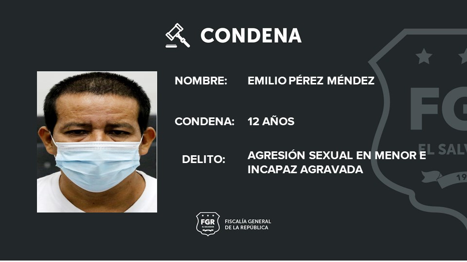 Santa Tecla. La Fiscalía General de la República (FGR) sigue haciendo justicia para menores víctimas de delitos sexuales, y esta vez logró una sentencia de 12 años de prisión para Emilio Pérez Méndez, quien agredió sexualmente a una niña de nueve años en Nuevo Cuscatlán, La Libertad.