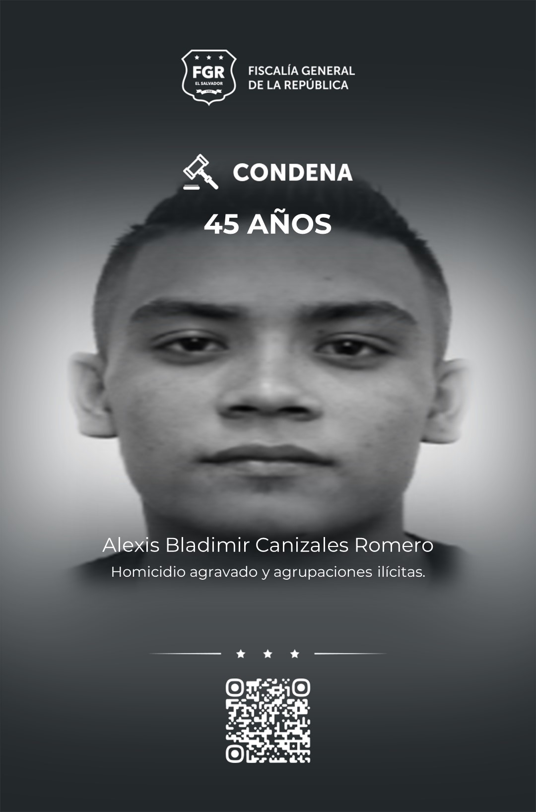 Además, Alexis Bladimir Canizales Romero, alias comando, fue condenado a 45 años prisión por dos homicidios agravados y agrupaciones ilícitas.
