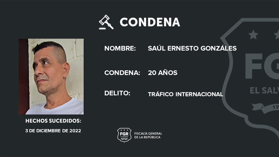 La Unión. La Fiscalía General de la República (FGR) logró que el guatemalteco Saúl Ernesto Alvarado Gonzáles sea condenado a 20 años de cárcel por tráfico internacional de droga.