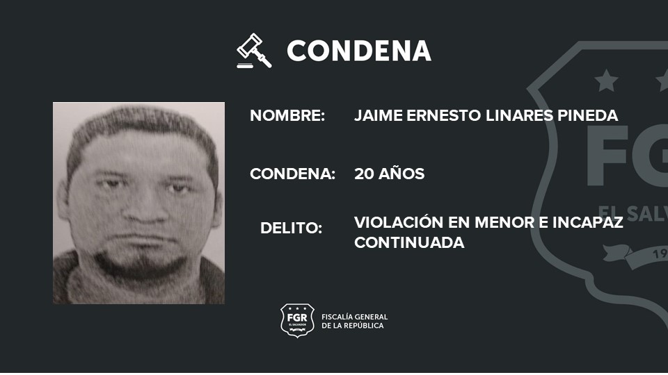 Las abundantes pruebas presentadas por la fiscal del caso en el juicio fueron claves para que el Tribunal Primero de Sentencia de Santa Tecla condenara a Linares por el delito de Violación en Menor e Incapaz en modalidad Continuada.