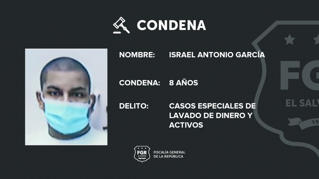 San Salvador. Israel Antonio García, un pandillero que delinquía en el Distrito Italia en el municipio de Tonacatepeque, fue condenado a prisión tras comprobarse su participación en el delito de Lavado de Dinero y de Activos.