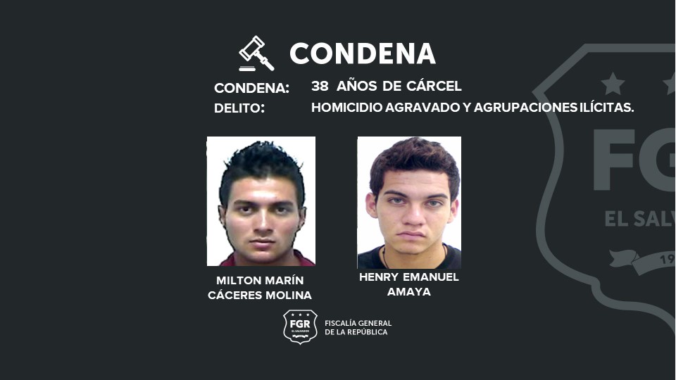 Roger Aníbal López Ferman, alias gato, (presente); Élmer Edrulfo Ríos Mancía, alias “meme”, (presente); Selvin René Vargas Almendárez, alias selvin, y Juan Andrés Manzano Bonilla, alias bliblin (ambos rebeldes), fueron condenados a 44 años de prisión por 1 homicidio agravado y organizaciones terroristas.
