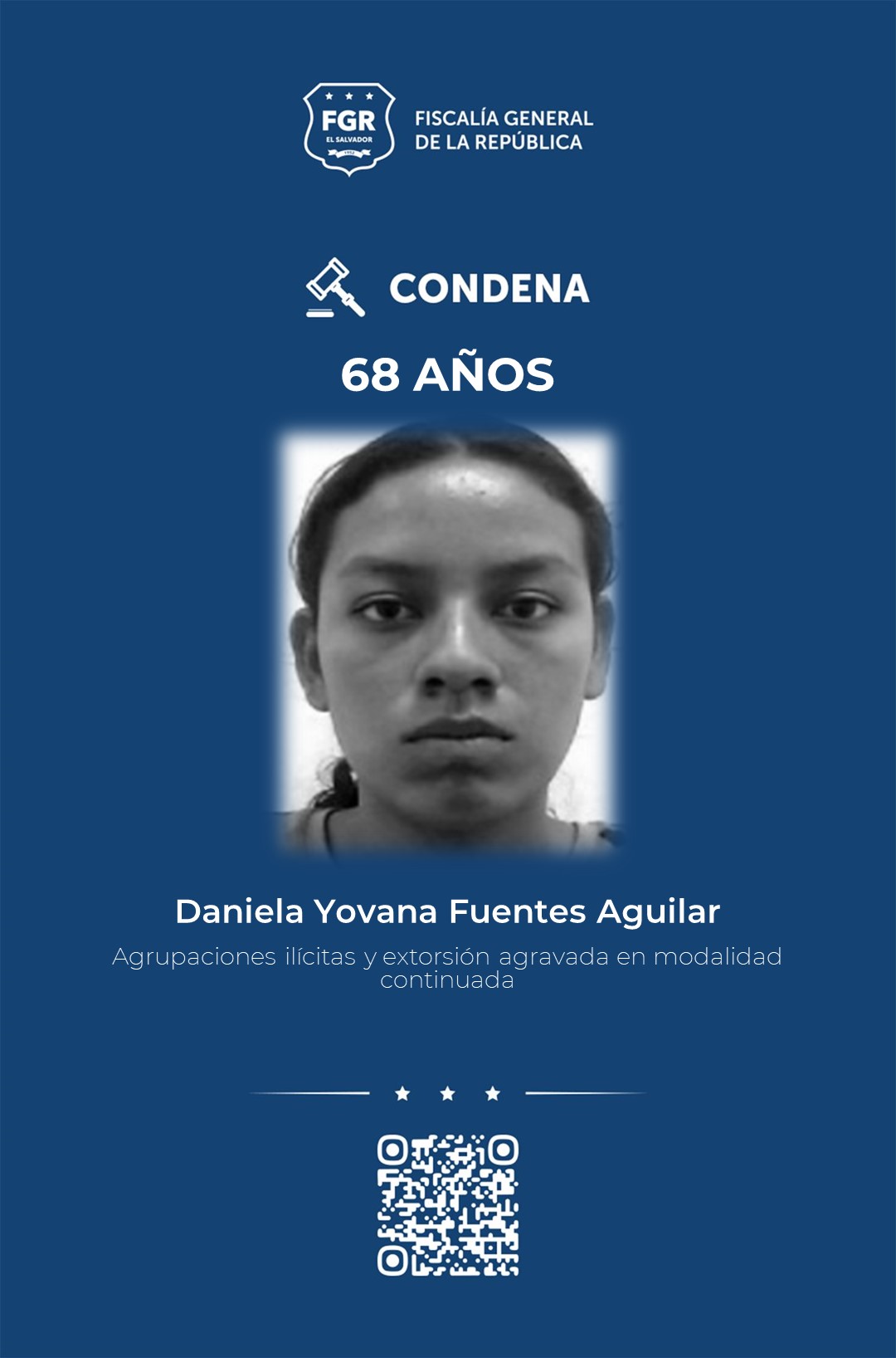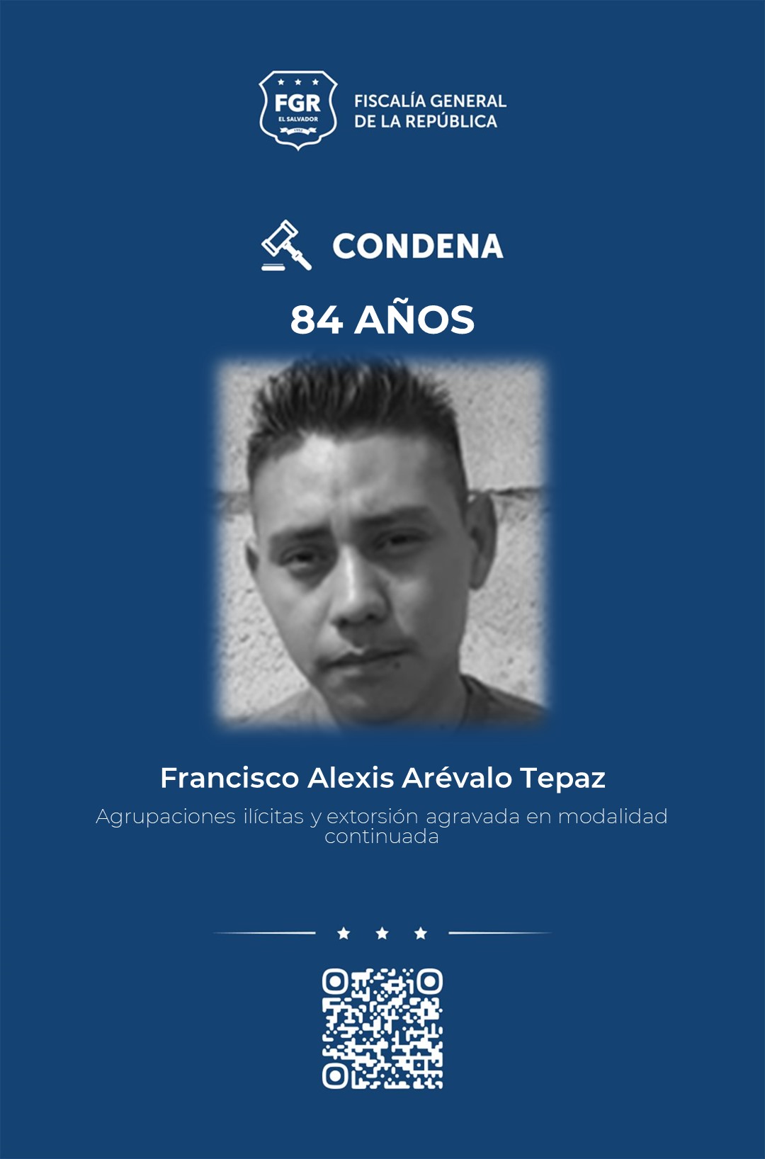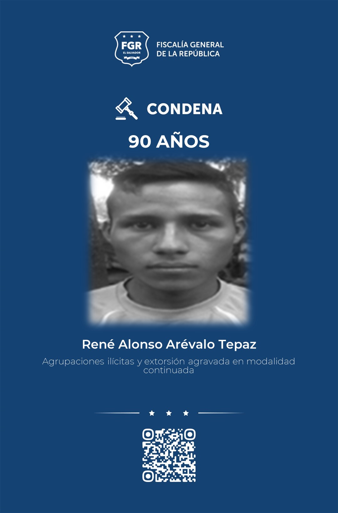 Ese mismo rango tenía René Alonso Arévalo Tepaz, alias sayco o pilato, y fue sentenciado a 90 años de prisión. Los colaboradores Francisco Alexis Arévalo Tepaz fue condenado a 84 años, y Daniela Yovana Fuentes Aguilar recibió condena de 68 años; ambos fueron juzgados por los delitos de agrupaciones ilícitas y extorsión agravada en modalidad continuada.