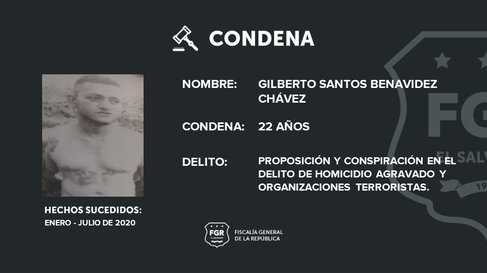Carlos Alfredo duran Moreira ( palabrero de zona) y Gerber Geovanni Flores (homeboy), fueron condenados a 32 años de cárcel, mientras que Gilberto Santos Benavidez Chávez (palabrero de zona) y Willian Alexander González Benítez (homeboy) fueron condenados a 22 y 28 respectivamente por proposición y conspiración en el delito de homicidio agravado y organizaciones terroristas.
