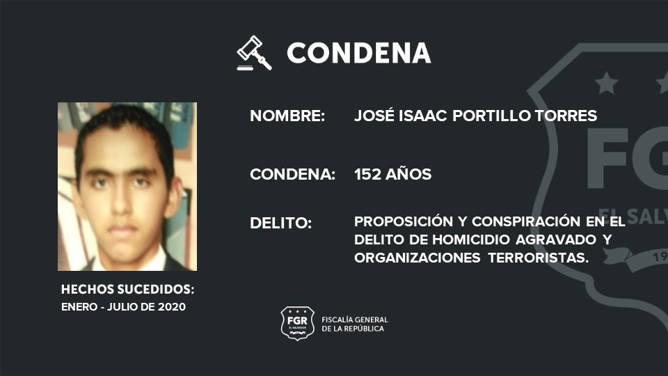 Entre los sentenciados está José Isaac Portillo Torres, quien tiene el cargo de corredor de programa. El tribunal le impuso 12 años de cárcel por organizaciones terroristas y 20 por cada una de las 7 víctimas, en total deberá cumplir una sentencia de 152 años de prisión.
