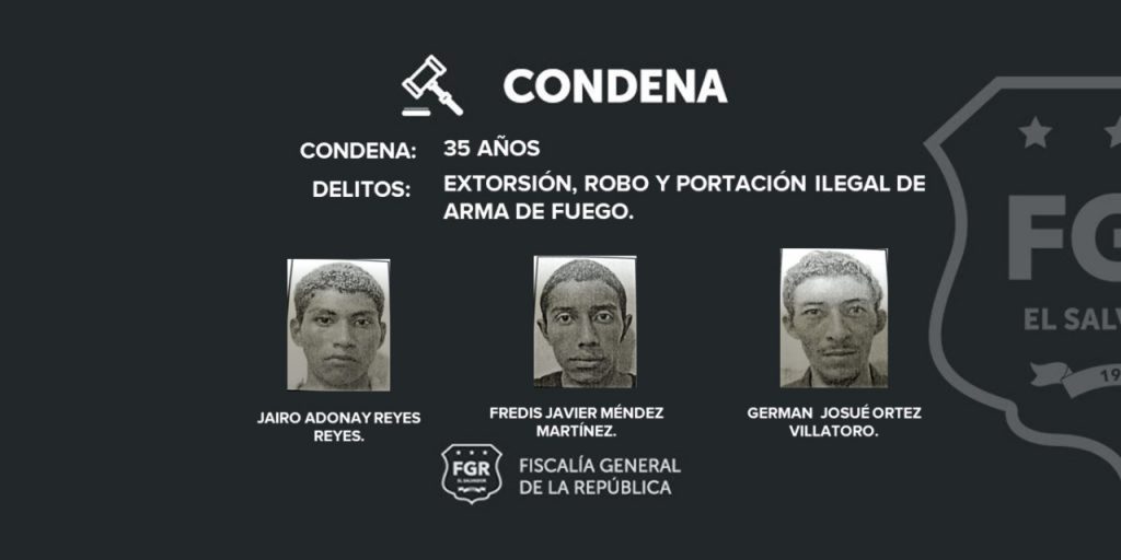 Los cuatro delincuentes condenados son: German Josué Ortez Villatoro, Jairo Adonay Reyes Reyes, José Orlando Méndez Ortez y Fredis Javier Méndez Martínez, todos fueron individualizados por la FGR como los encargados de extorsionar a un habitante del municipio de Corinto, Morazán.
