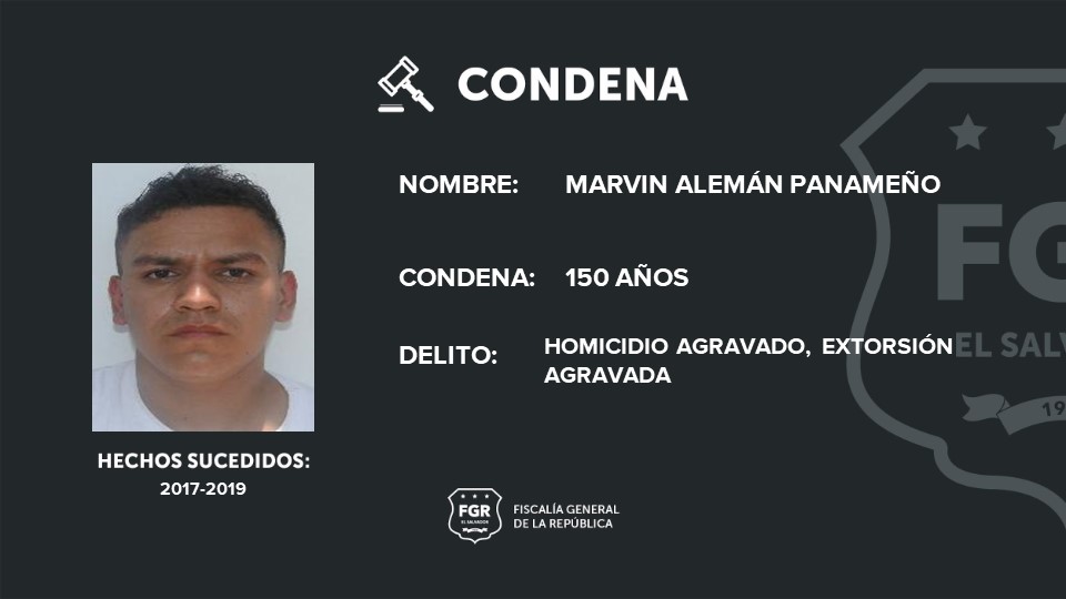 Cristian Alberto Franco López y Marvin Alemán Panameño fueron sentenciados a 128 y 150 años de cárcel respectivamente, por extorsión agravada, homicidio agravado y organizaciones terroristas.