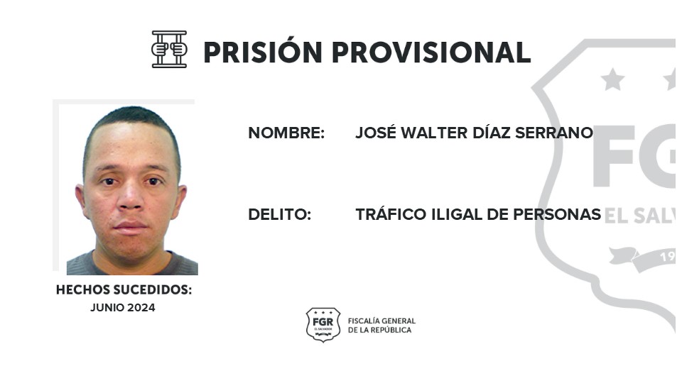 Ahuachapán. La Fiscalía General de la República (FGR) logró que José Walter Díaz Serrano sea enviado a juicio por el delito tráfico ilegal de personas. El hecho ocurrió en junio de 2024 en San Francisco Menéndez, Ahuachapán.