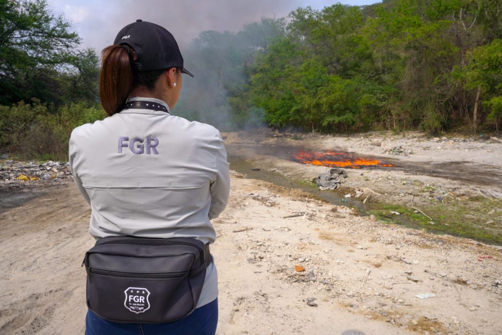 La quema realizada en Changallo, Ilopango, fue ejecutada en coordinación de la FGR, con la División Antinarcóticos y División Técnica Científica Forense de la PNC.