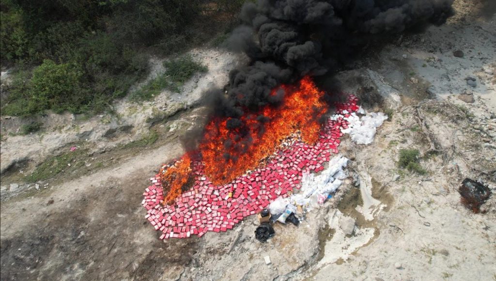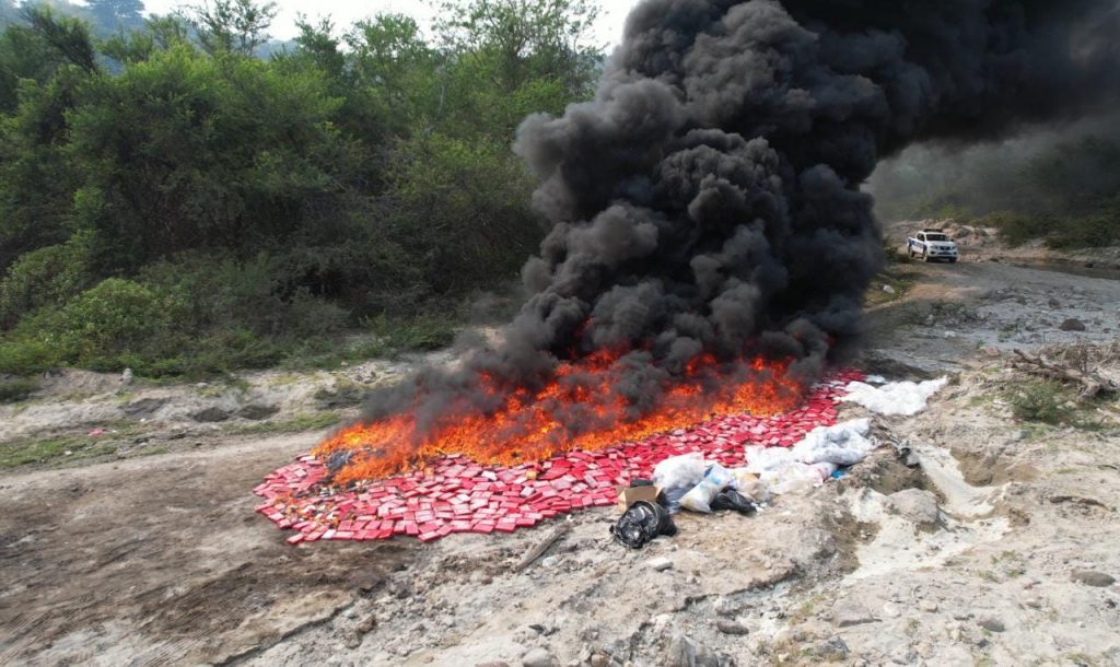 A la incineración de la cocaína se le sumó el decomiso de 22,355 gramos de cocaína y 22,726.332 gramos de marihuana en Santa Ana.