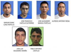 Los seis pandilleros presentes fueron identificados como: Alfredo Antonio Reina, alias “Tacho”, de 33 años; José Francisco Castillo Gutiérrez, alias “chico”, de 20 años; José Alexander Mancía Portillo, alias “Coyote, Chilillo o Chande”, de 23 años; Gerson Osiris Luna Portillo, alias “Checho”, de 23 años; José Luis Galdámez Umaña, alias “Gorgoño o Luigi”, de 27 años, y Pablo Antonio Castillo, alias “Pablo o Mali”, de 29 años; capturados con Orden de Detención Admirativa, el día 25 de abril de 2018, en la Colonia Buena Vista, Cantón Chilamates, de Nueva Concepción, Chalatenango.