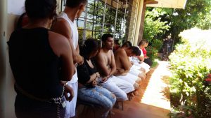 Al hacerse presentes al lugar mencionado la PNC, logra la captura de las 24 personas, decomisando en el lugar, dos pistolas calibre 9 mm, una registrada a nombre de la Policía y la otra de procedencia guatemalteca,  70 gramos de marihuana y una granada de uso exclusivo de la Fuerza Armada, 50 cartuchos para 9mm, 25 teléfonos celulares, seis vehículos y una motocicleta, dinero en efectivo, entre otros.