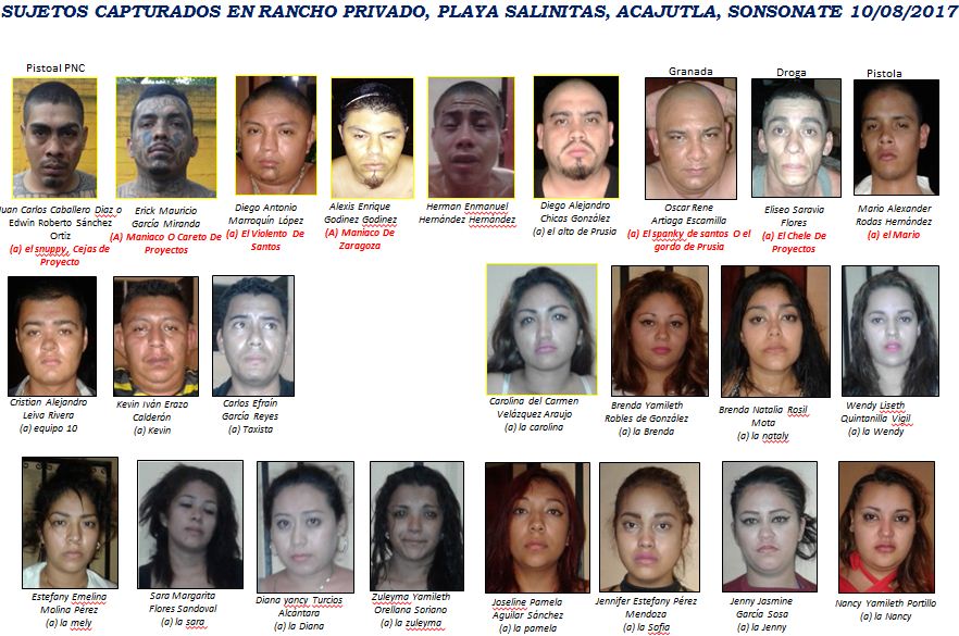 El Jefe Fiscal Hernández, explicó que las detenciones de estas personas se realizaron la madrugada del jueves 10 de Agosto de 2017,  miembros de la Policía Nacional Civil, luego de recibir  información que en un rancho ubicado en el residencial Salinitas, de la jurisdicción de Acajutla, departamento de Sonsonate,  se reunirían corredores de programas y “Ranfleros” de la MS-13, a planificar actividades ilícitas, quienes tendrían en su poder armas de fuego y otros ilícitos.
